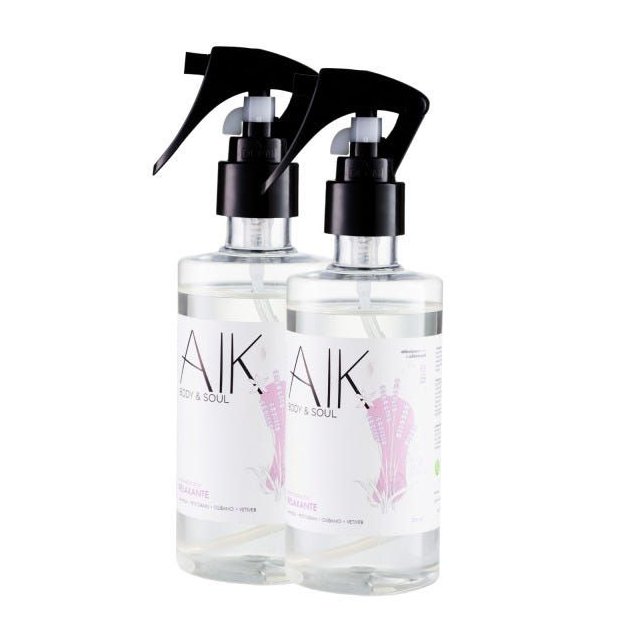 O kit contém dois Aromatizadores Relaxante AIK Body & Soul, cada um contendo 200ml.