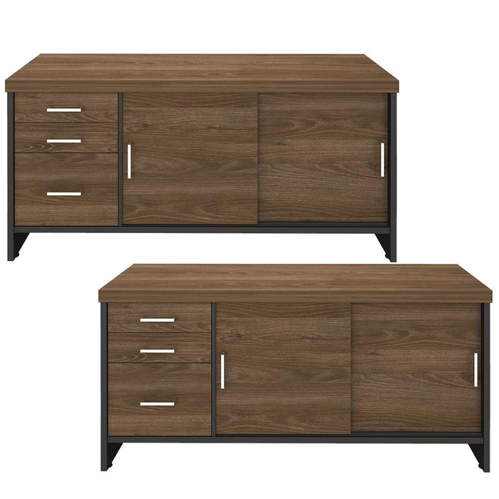 Kit 2 Balcões Multiuso Escritório 2 Portas 3 Gavetas Atria Executiva A02 Charuto Preto - Lyam