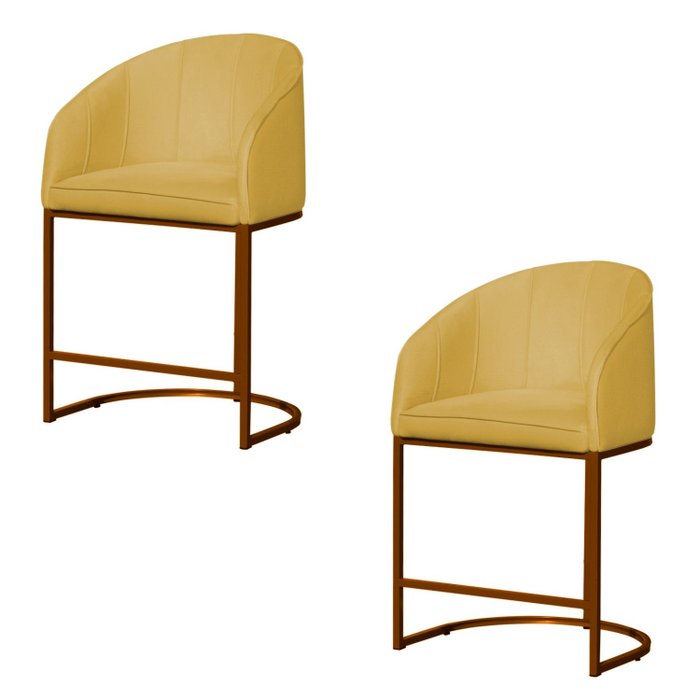 Kit 2 Banco Banqueta Poltrona Mia Base de Metal Bronze Suede Cor:amarelo