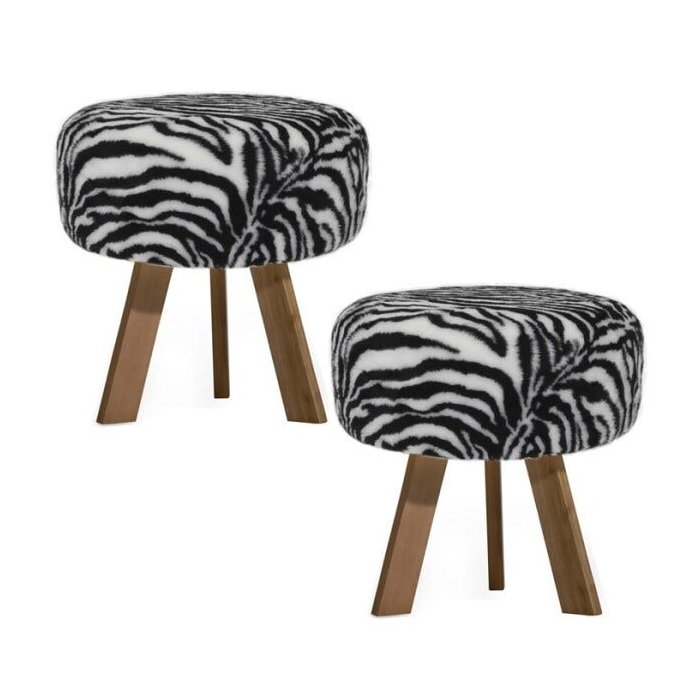 Kit 2 Banco Puff com Pelo Olivia Pf7000 Natural 439 Tecno Mobili