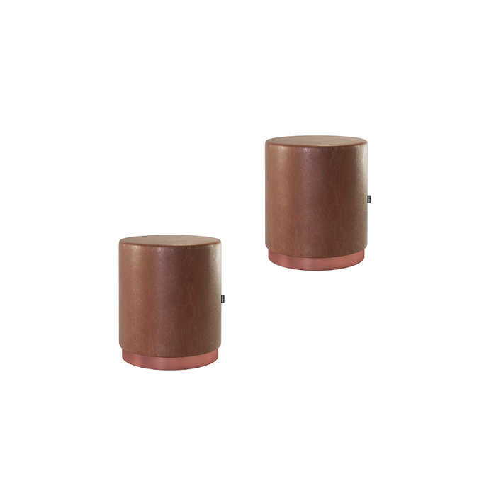 Kit 2 Banco Puff Estofado Redondo Decorativo Viena 49cm (altura) com cinta em metal - Revestimento Sintético na cor Café - Adz (Não acompanha luminária e demais objetos de decoração)