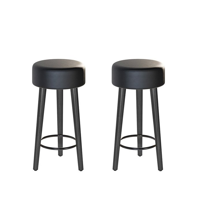 Kit 2 Bancos Paris Baixo 50cm Preto Pés Preto - Salaone