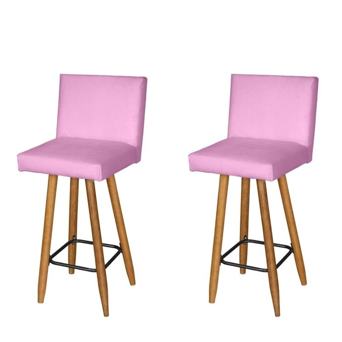 Kit 2 Banqueta Alta com encosto Olivia Balcão Cozinha Bistrô Pé Castanho Suede Rose - Mafer Móveis M