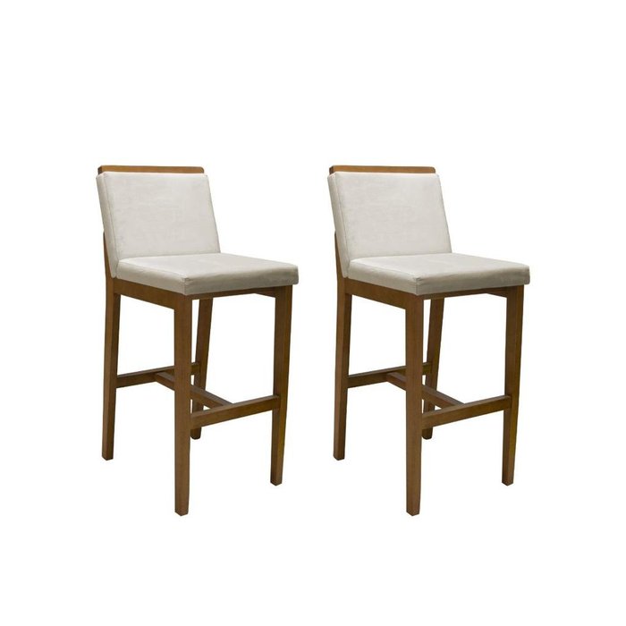 Kit 2 Banqueta Alta em Madeira Maciça Londres Linho Cru