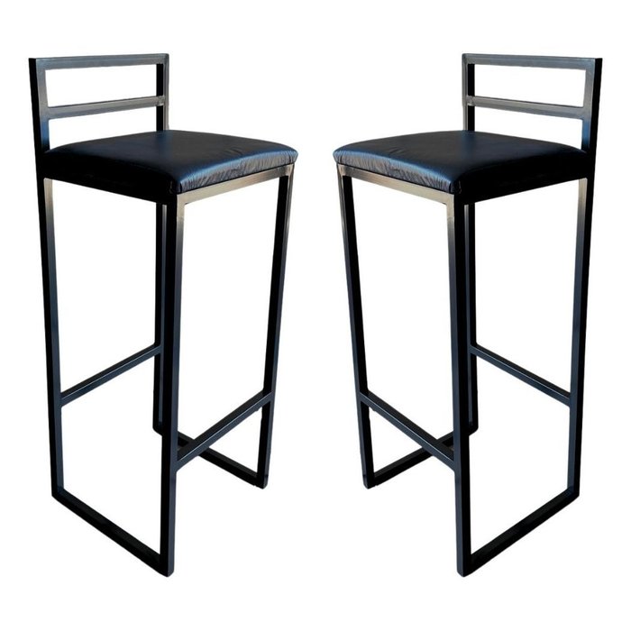 2 Banqueta Alta Industrial Moderna Preta com Assento Estofado