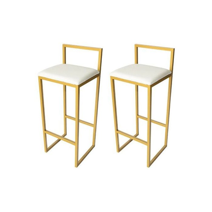 Kit 2 Banquetas Altas Industriais Douradas com Assento Estofado Branco | Bar, Balcão, Bistrô, Cozinha e Área Gourmet