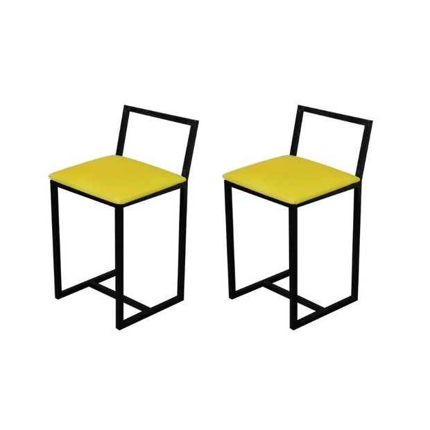 Kit 2 Banqueta Baixa Para Cozinha Preta Industrial Assento Estofado Amarelo