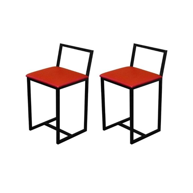 Kit 2 Banqueta Baixa Para Cozinha Preta Industrial Assento Estofado Vermelho