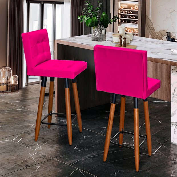 Kit 2 Banqueta Grace Para Cozinha Gourmet Ou Balcão Área Gourmet Pés Palito Corino Pink