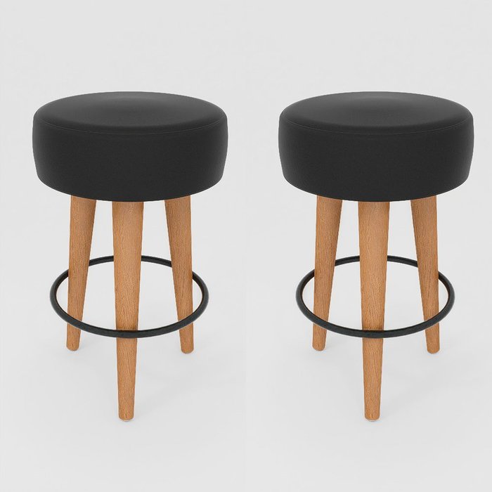 Conjunto 2 Banqueta Média Cozinha 60cm Estofada Preto Madeira Maciça Urban