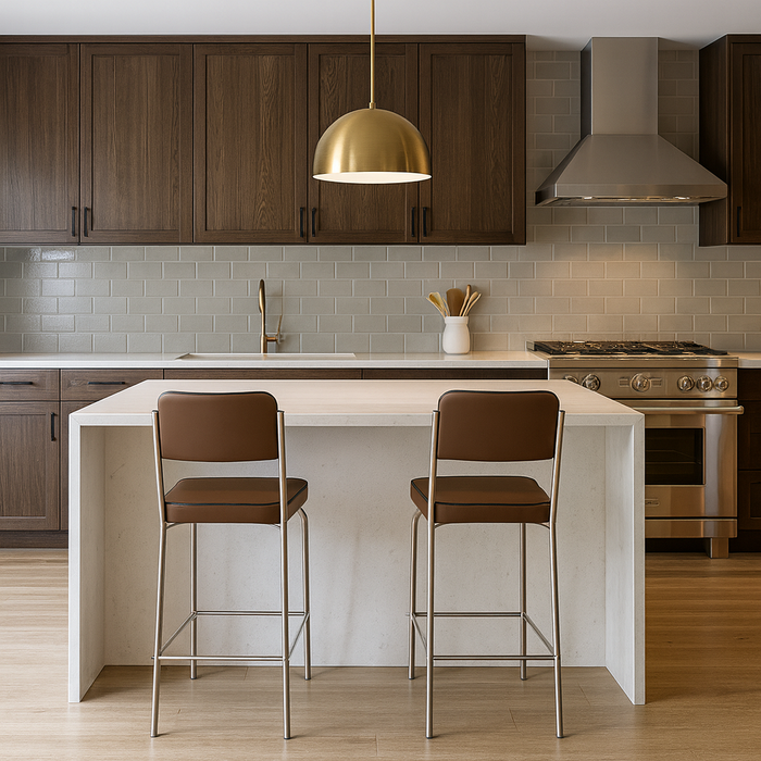 Kit 2 Banquetas Alta Cozinha Americana Gourmet Bar Balcão em Aço Cromado Reforçado Vintage Marrom