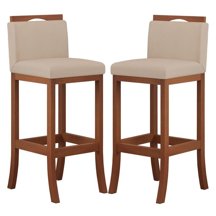 Kit 2 Banquetas Alta Encosto Estofado 38x102 Cm Turim Madeira Maciça Pinhão Suede Bege CCS Bege