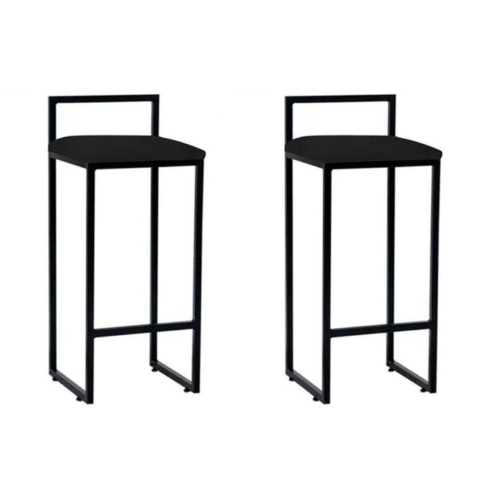 Kit 2 Banquetas Alta Industrial Bar Cozinha Bistrô Aço Dori Preta Assento Corino Preto - Cor: Preto