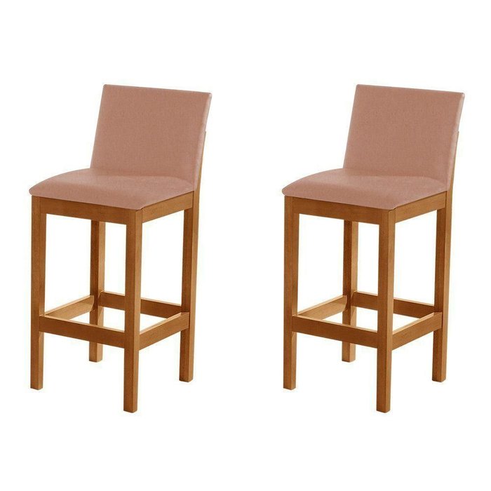 Kit 2 Banquetas Alta Luxo Pérola Com Encosto Estofada Em Veludo Rosa Claro Madeira Maciça Castanho