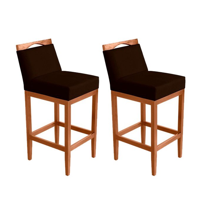 Kit 2 Banquetas Alta Lyara em Madeira Maciça com Encosto Estofada Marinho Móveis Banqueta Lyara Marr Marrom