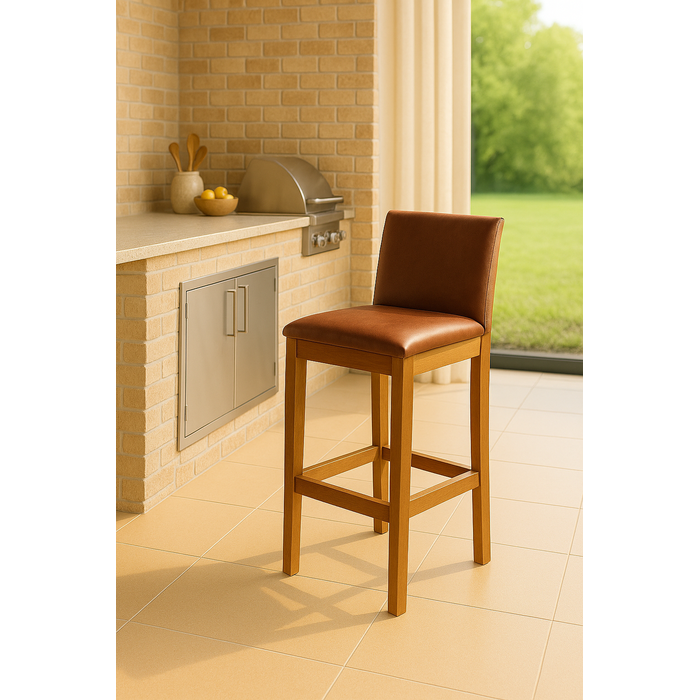 Kit 2 Banquetas Alta Pérola com Encosto Estofada em Couro Pu Caramelo Madeira Maciça Castanho
