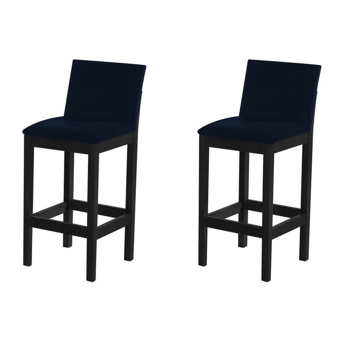 Kit 2 Banquetas Alta Pérola Com Encosto Estofado Veludo Azul Petróleo Madeira Maciça Preto