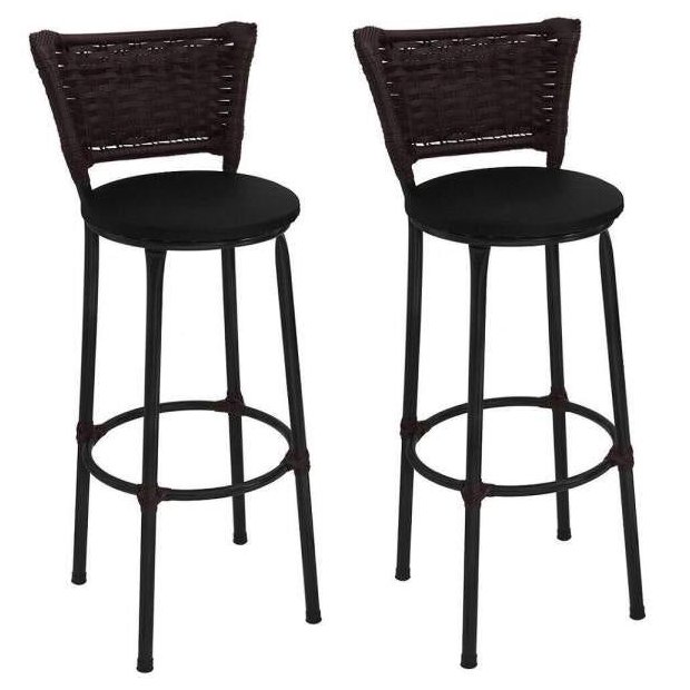 Kit 2 Banquetas Alta Preta Junco Argila com Assento Preto Fortmix Preta