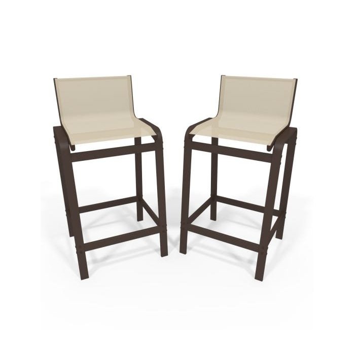Kit 2 Banquetas Altas bancada Alumínio Marrom Tela Bege