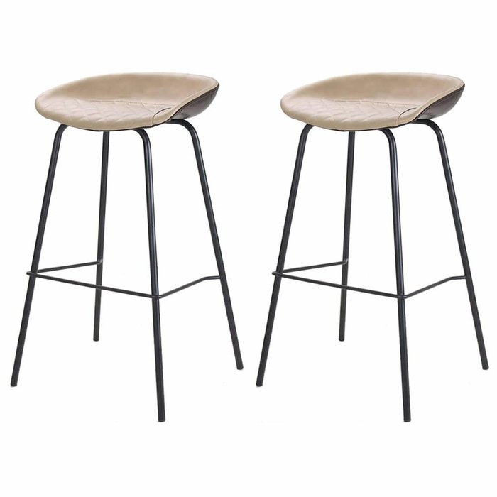 Kit 2 Banquetas Altas Cassia Rosário Rivatti PU Chocolate e Nude Base Metal Aço Preto