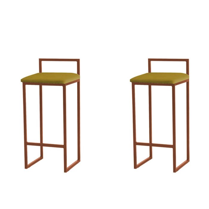 Kit 2 Banquetas Altas Estofadas Suede Pietra Base Bronze:AMARELO