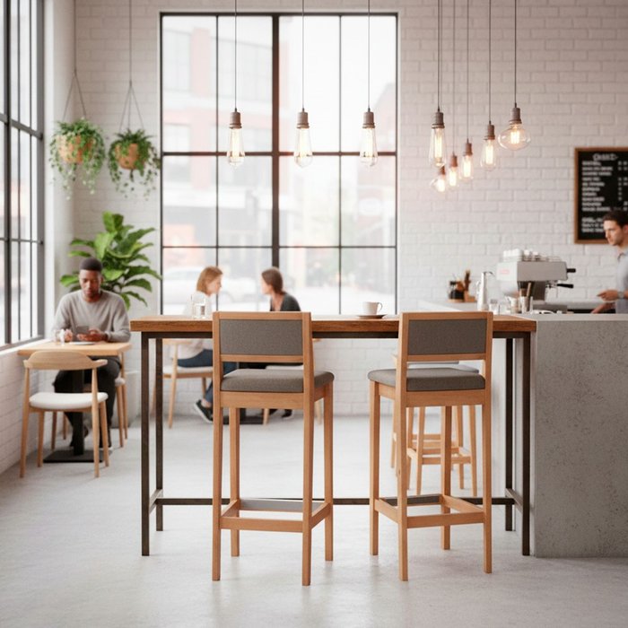 A Banqueta Alta Hellen combina elegância, conforto e resistência em um único design. Ideal para cozinhas, áreas gourmet e espaços modernos, ela traz um visual sofisticado graças ao seu encosto estofado, que adiciona leveza e charme ao ambiente.