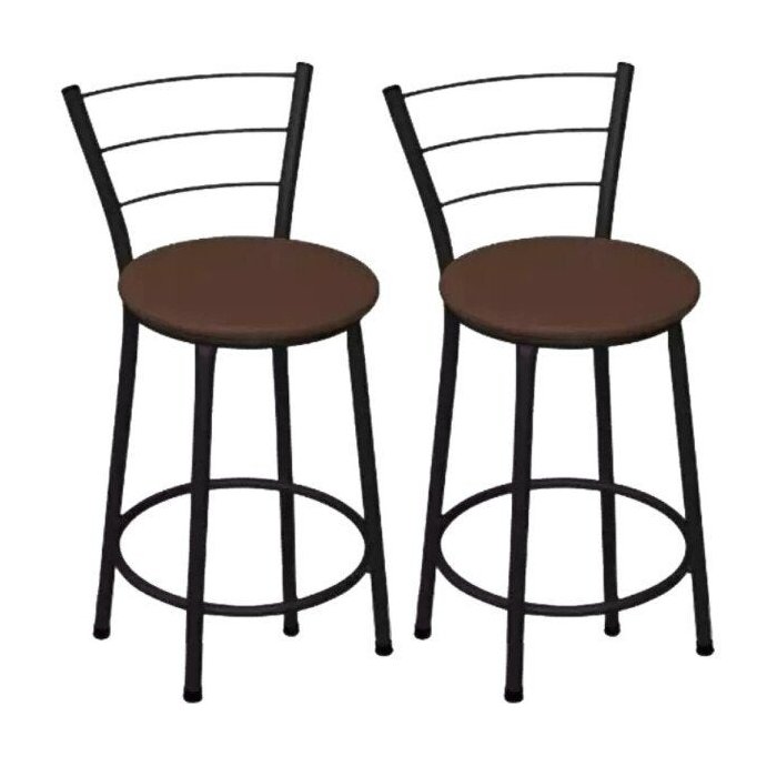 Kit 2 Banquetas Baixa Preta com Assento Marrom