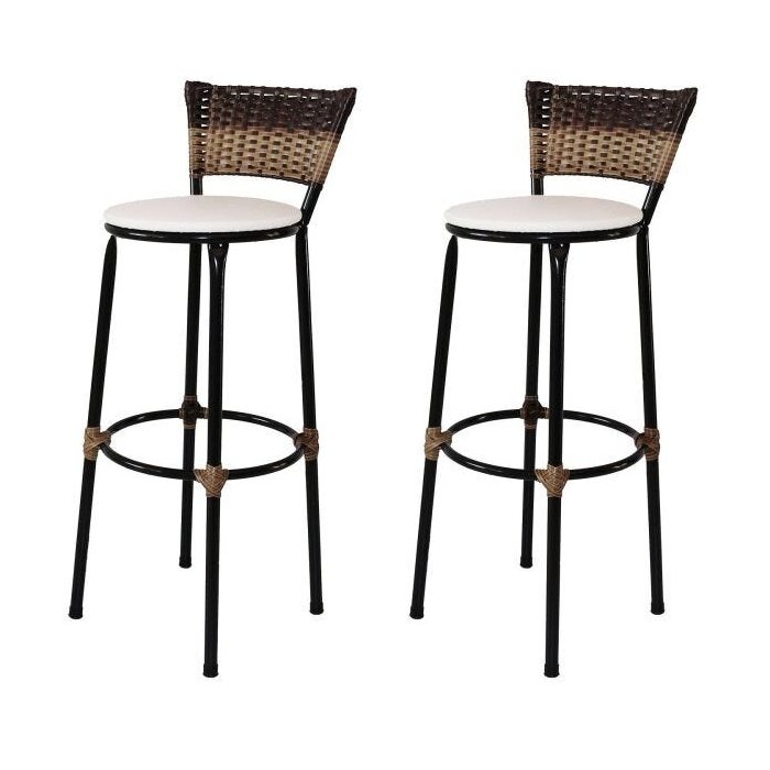 Kit 2 Banquetas Bistrô Aço Junco Sintetico Degrade Assento Branco