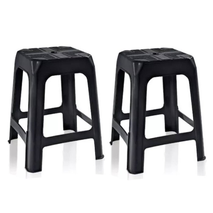 Kit 2 Banquetas de Plástico Preta Banquinho Empilhável