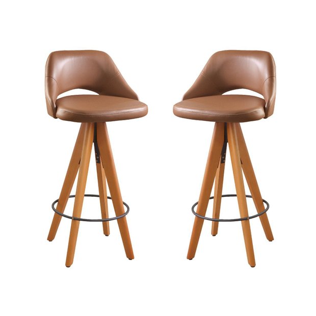 Kit 2 Banquetas Giratórias Estofadas com Encosto Nicole Caramelo