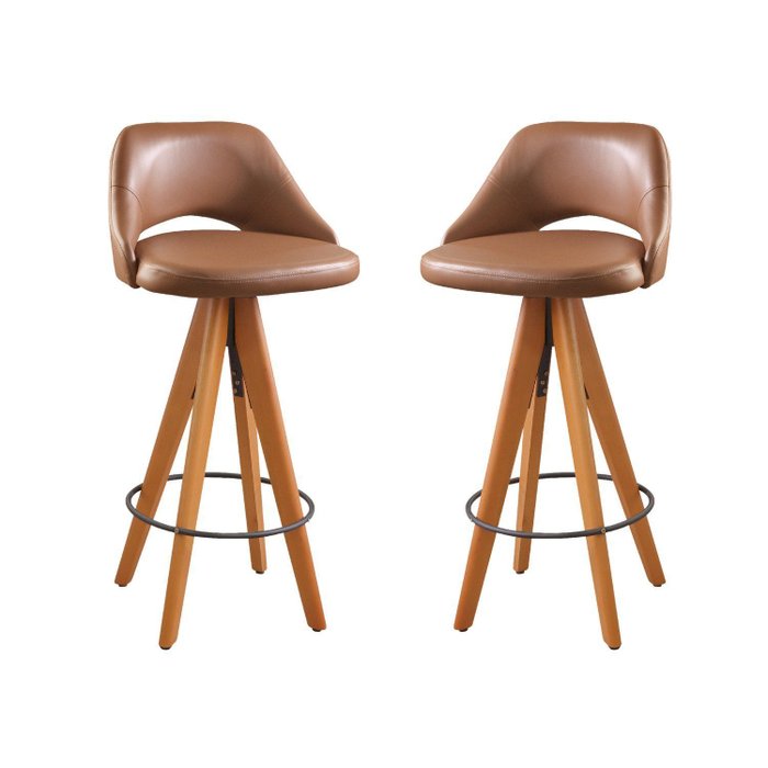 Kit 2 Banquetas Giratórias Estofadas com Encosto Nicole Caramelo