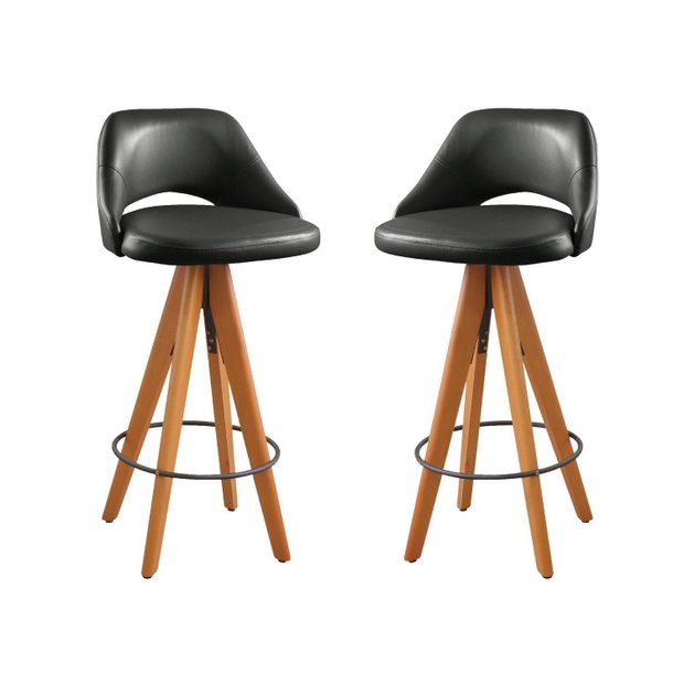 Kit 2 Banquetas Giratórias Estofadas com Encosto Nicole Preto/Freijó