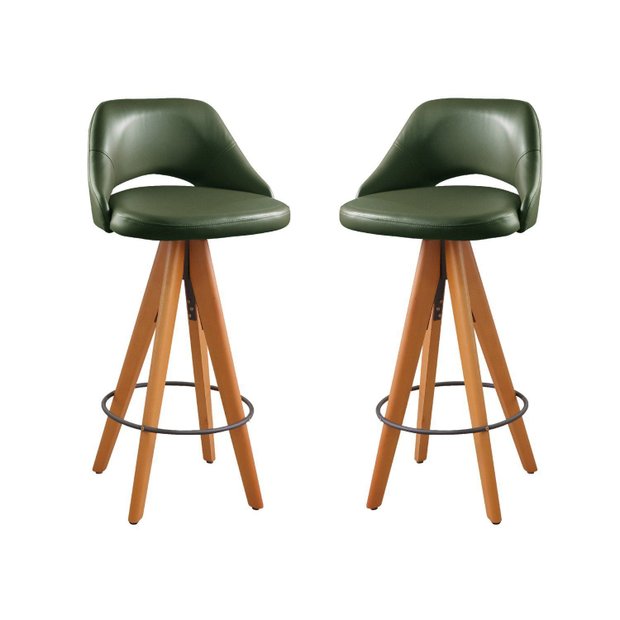 Kit 2 Banquetas Giratórias Estofadas com Encosto Nicole Verde/Freijó