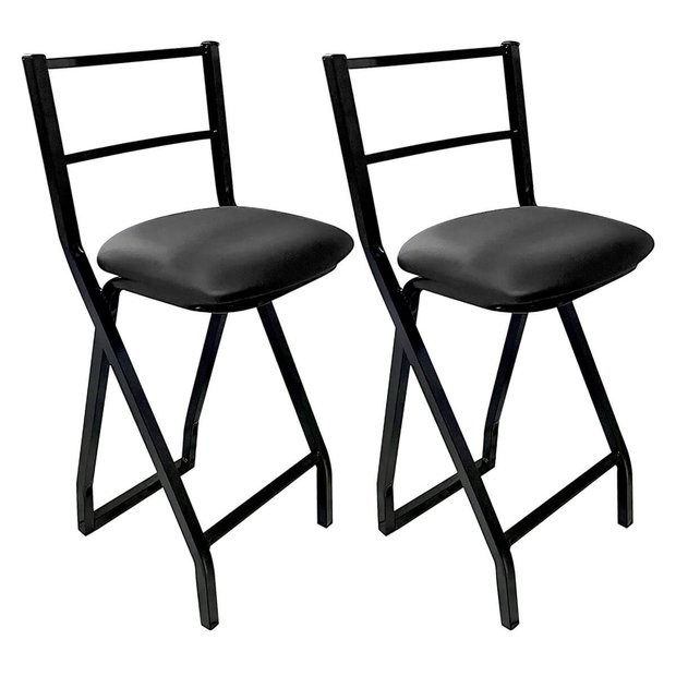Kit 2 Banquetas Gourmet Alta Metal Estilo Industrial Assento Corino Preto