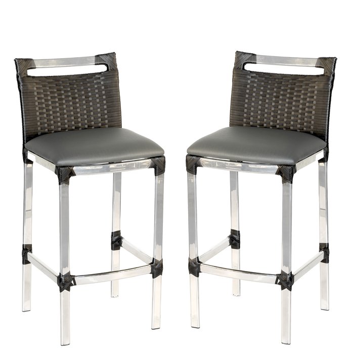 Kit 2 Banquetas Hugo com Assento Estofado em Trama dulpa e Alumínio para Bar, Balcão - Preto C6