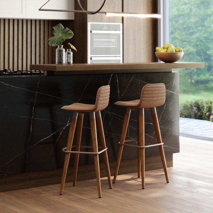 Design moderno, conforto e resistência para bancada, cozinha ou espaço gourmet. Assentos em linho e base em madeira maciça carvalho: elegantes, firmes e fáceis de montar.