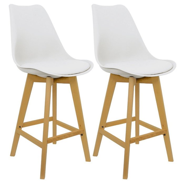 Kit 2 Banquetas Monty Leda Alta Base Fixa Madeira - Branca Branco
