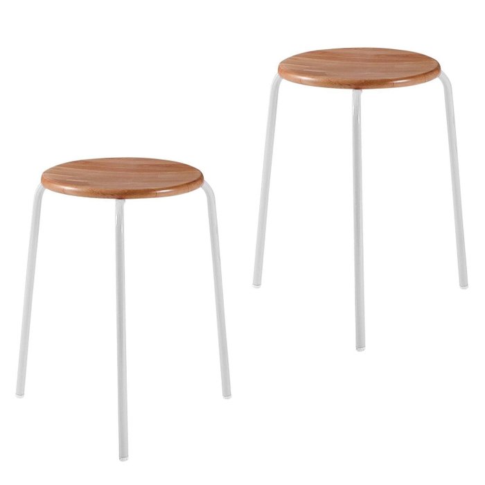 Kit 2 Banquetas para Cozinha com Base de Aço Cumbuca Branco/Nature