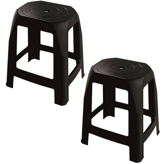 Kit 2 Banquetas Plástica Preta Adulto 31x25x47cm 0327 Uninjet