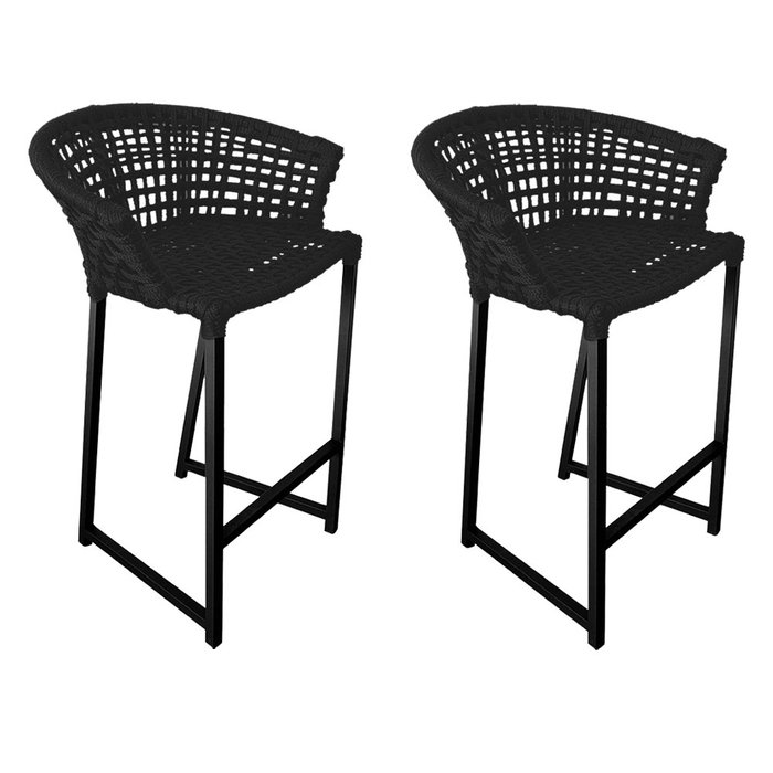 Kit 2 Banquetas Reis em Corda Náutica e Base em Alumínio Preta para Área Gourmet - Externa Preta