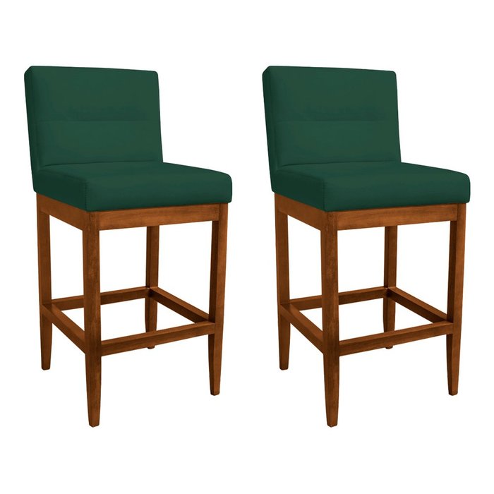 Kit 2 Banquetas Valencia Base de Madeira Maciça Veludo Verde Bandeira