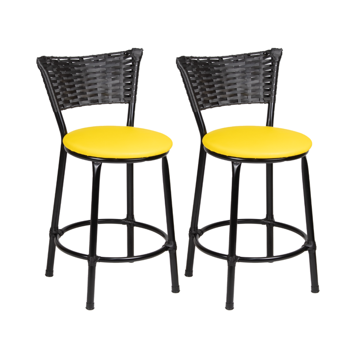 Kit 2 Banquinhos Baixo Cozinha Americana de Fibra Sintetica:preto/amarelo Preto