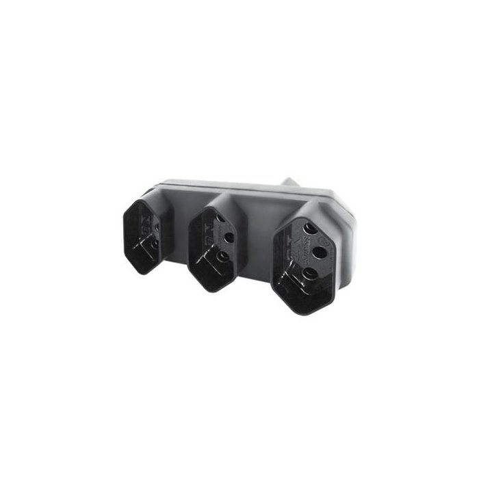 - Desenvolvido para o encaixe de 3 tomadas de 3 pinos simultâneamente.