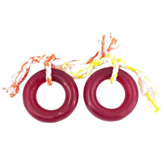 KIT 2 BRINQUEDO MORDEDOR ANEL CRISTAL COM CORDA SEM FURO MÉDIO PET