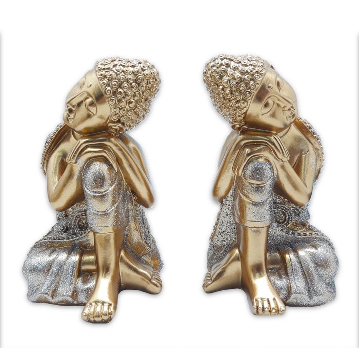 Enfeite composto de 2 Buda com 13 cm de altura.