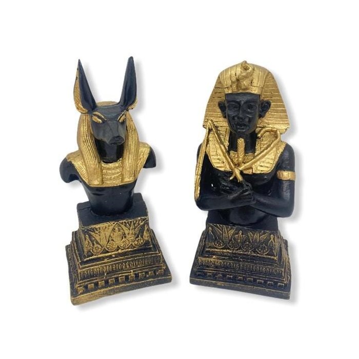 Kit 2 Bustos Egípcios Anubis e Tutankamon em Resina 15 cm