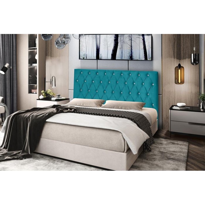 Kit 2 Cabeceiras Pérola 195Cm Para Cama Box King Suede Azul Turquesa