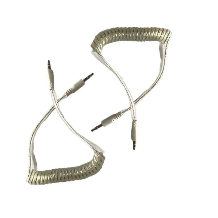 Kit 2 Cabo Auxiliar P2xP2 Espiral Branco Som Carro Celular