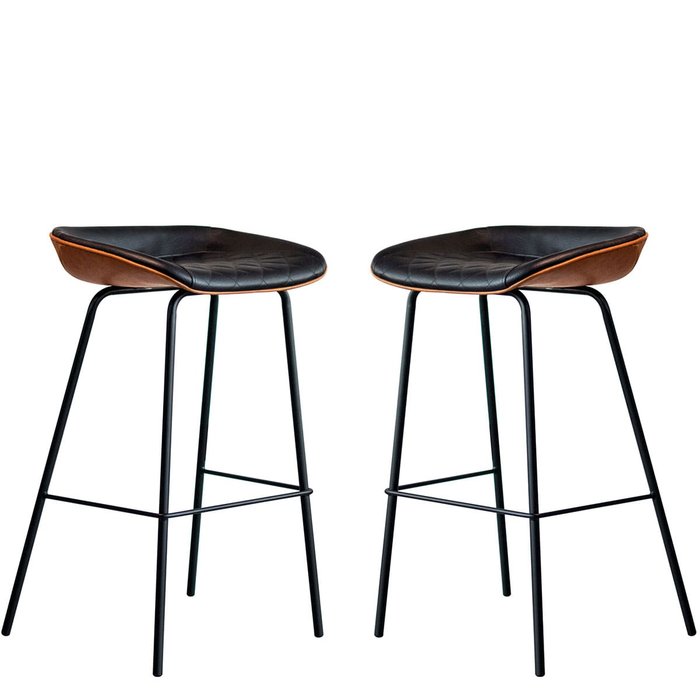 Kit 2 Cadeira Banqueta Industrial Alta com Assento Estofado Leather Edecasamoveis 9999-03-Preto/Marrom