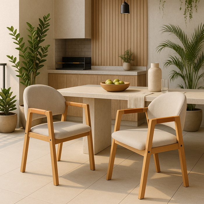 Cadeira de Jantar Arezzo – Conforto, Estilo e Sofisticação em Cada Detalhe Transforme sua sala de jantar com a elegância da Cadeira Arezzo. Com design contemporâneo e estrutura robusta em madeira maciça, ela combina beleza, conforto e durabilidade, sendo perfeita para compor ambientes modernos e acolhedores. Destaques do Produto Design ergonômico: encosto curvado que se adapta à forma das costas, garantindo conforto prolongado. Estrutura em madeira maciça: resistente, estável e com acabamento de alto padrão. Estofamento em tecido linho: toque suave, visual sofisticado e fácil de combinar com diferentes estilos de decoração. Assento e encosto acolchoados: proporcionam conforto ideal durante as refeições ou momentos de descontração. Acabamento moderno: linhas retas e elegantes que se integram facilmente a salas de jantar, escritórios ou recepções. Medidas Aproximadas Altura total: 83,5 cm Largura: 58 cm Profundidade: 68 cm Ideal para Salas de jantar e cozinhas gourmet Escritórios e recepções Ambientes residenciais e comerciais com toque moderno e aconchegante Cadeira Arezzo – conforto que inspira e design que encanta. Perfeita para quem busca sofisticação e qualidade em um único móvel.